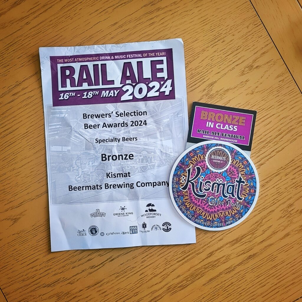 Another great trip to Rail Ale Festival this year resulting in our Coffee Porter ‘Kismat’ recieving a Bronze in the Speciality Beer category. So pleased this beer has got the recognition it deserves as people always comment on how nice a coffee porter it is. We’re hoping to get the next batch put into bottles so more people can try this tasty brew 🍻