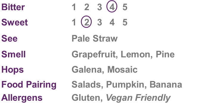Pale ale with a hoppy finish on the palate and a light citrus aroma with a hint of elderflower and grapefruit.