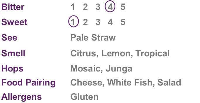 Session IPA bursting with mango flavour & tropical-lemon aroma, finished with a crisp citrus aftertaste.