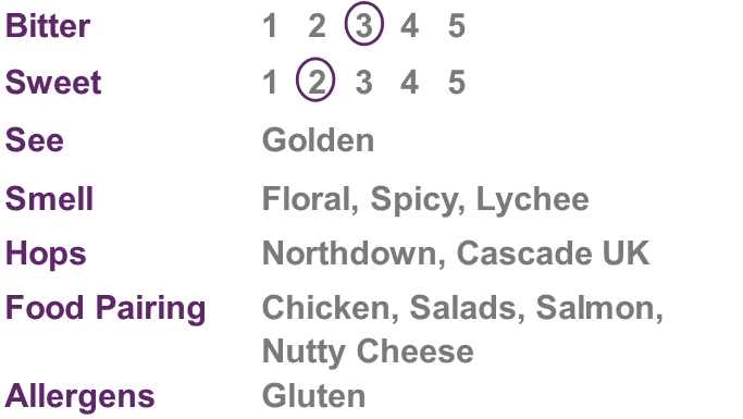 Our best selling golden ale full of fruity flavours with citrus notes and a floral aroma.