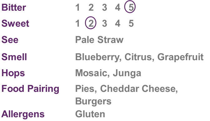 Made with Mosaic hops for an intense aromatic flavour.