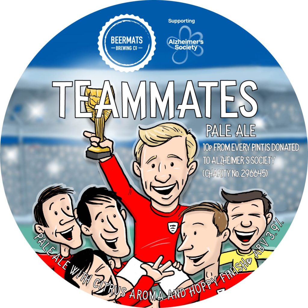 Beermats are supporting the Alzheimers Society (Charity No.296645) with our Teammates Pale Ale, with every pint & bottle sold we will donate 10p to the great work of this charity.